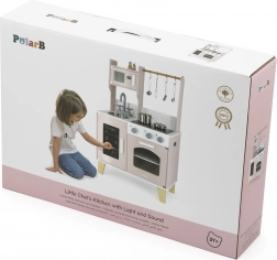 Stylowa drewniana kuchnia VIGA PolarB zapewni dzieciom godziny kreatywnej zabawy i nauki. Zawiera zlew, piekarnik, palniki, mikrofalówkę oraz lodówkę z tablicą na wiadomości. Realistyczne elementy, takie jak obrotowe pokrętła, otwierane drzwiczki i praktyczne kuchenne akcesoria, wspierają zabawę w odgrywanie ról, samodzielność i odpowiedzialność przy sprzątaniu po „gotowaniu”.