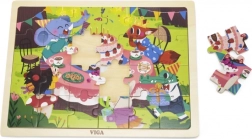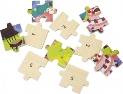 Drewniane puzzle VIGA z wesołymi zwierzątkami wokół urodzinowego tortu to idealny wybór na pierwsze większe puzzle. Podstawa z podkładem zapewnia stabilny fundament i pomaga dzieciom łatwiej znaleźć właściwe elementy. Numeracja elementów 1–24 dodatkowo wprowadza w zabawny sposób naukę liczb i wspiera stopniowe układanie bez frustracji.