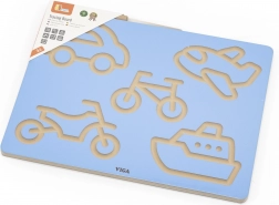 Odkryj zabawną drogę do pierwszych kresek i liter. Drewniana tablica VIGA z motywami pojazdów prowadzi dzieci do płynnych ruchów ręki, właściwego nacisku i kierunku prowadzenia. Trening odbywa się naturalnie poprzez zabawę – wielokrotne obrysowywanie rowków wspiera koncentrację i pewność ręki.