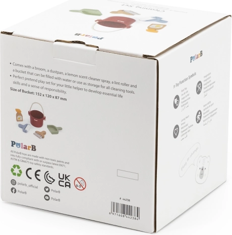 Podaruj dzieciom radość z zabawy w naśladowanie dzięki drewnianemu zestawowi do sprzątania POLARB. Wiadro z wytrzymałym sznurowanym uchwytem pełni również funkcję sprytnego miejsca do wygodnego przechowywania wszystkich narzędzi. Drewniane elementy są przyjemne w dotyku, trwałe i wizualnie atrakcyjne dzięki delikatnym pastelowym odcieniom.