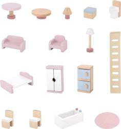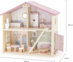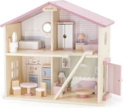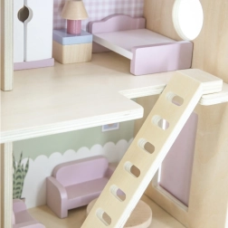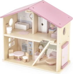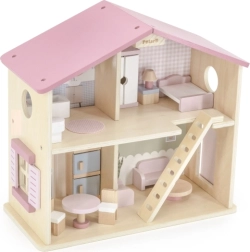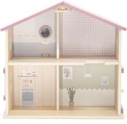 Drewniany domek dla lalek Viga PolarB zapewnia dzieciom piękne środowisko do kreatywnej zabawy. Dwa poziomy ze schodami oferują kuchnię, salon, łazienkę i przytulną sypialnię – każdy pokój jest starannie zaprojektowany i wyposażony w dopracowane dodatki. Dzięki solidnemu wykonaniu z wysokiej jakości drewna oraz ponadczasowym pastelowym barwom domek jest trwały, bezpieczny i świetnie wpasuje się do pokoju dziecięcego.