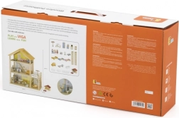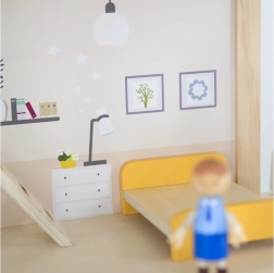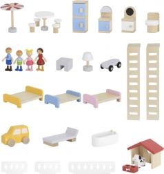 Dzięki solidnej drewnianej konstrukcji i gładkim krawędziom zabawa jest bezpieczna i przyjemna. Aż 32 elementy rozwijają wyobraźnię, małą motorykę oraz umiejętności społeczne. Idealny dla lalek do 10 cm.