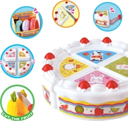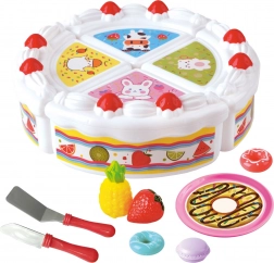 Okrągły tort można podzielić na kawałki i serwować przy pomocy noża, szpatułki i talerzyka – idealny do ćwiczenia małej motoryki i dzielenia się.
