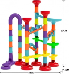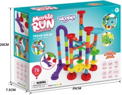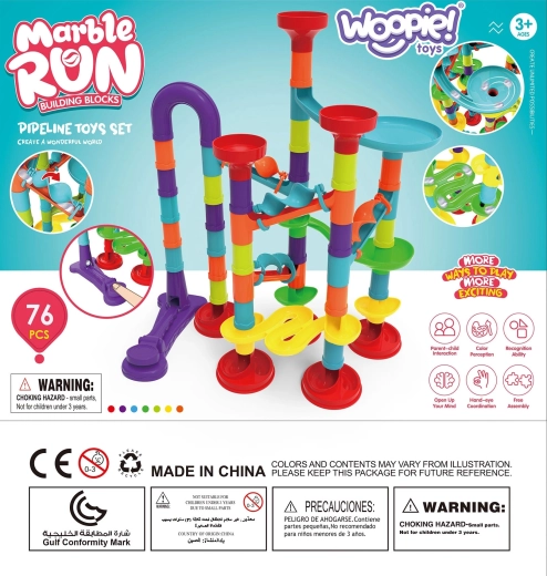 Kreatywny zestaw do budowy kulodromu WOOPIE to idealna zabawka dla ciekawskich dzieci. Dzięki żywym kolorom i różnym kształtom rur, lejków i zakrętów dzieci z łatwością tworzą własne oryginalne tory i obserwują, jak kulki pędzą jedna za drugą.
