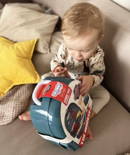 Solidne plastikowe wykonanie z czytelnym oznaczeniem narzędzi i łatwym przechowywaniem pomaga utrzymać porządek i wytrzymuje codzienną zabawę.