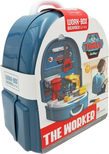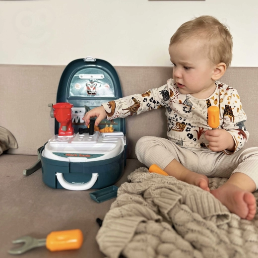 Zestaw dla małego majsterkowicza w praktycznym plecaku marki WOOPIE zamieni każdą zabawę w kreatywną przygodę. Kompaktowy plecak zmienia się w mini warsztat 2w1 i zawiera 18 elementów – piłę, młotek, śrubokręt, klucz, wiertarkę, śruby i inne. Dzieci mogą zabrać zabawkę wszędzie ze sobą, rozwijać motorykę małą, wyobraźnię i odgrywanie ról – jak prawdziwy majster już od 3 lat.