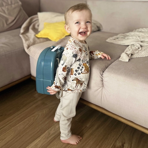 Lekki plecak w mgnieniu oka zmienia się w przejrzyste stanowisko pracy. Dzięki szelkom i solidnej rączce dziecko zabierze swój warsztat dokądkolwiek.