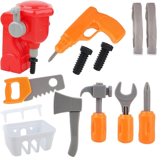 Zestaw oferuje bogaty wybór narzędzi do bezpiecznej i realistycznej zabawy – od piły i młotka, przez śrubokręt i klucz, po dziecięcą wiertarkę ze śrubkami i koszyczkiem na drobiazgi. Zabawa wspiera kreatywność, koordynację ręka–oko oraz naukę podstawowych umiejętności majsterkowicza.