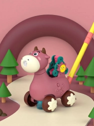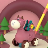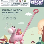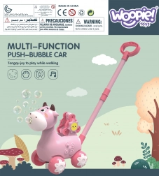 Chodzik krówka marki WOOPIE to idealny pomocnik w nauce chodzenia. Dzieci mogą prowadzić przed sobą swoją ulubioną krówkę, która podczas jazdy wypuszcza bańki prosto z pyszczka. Wystarczy przykręcić pojemnik z płynem (w zestawie są 2 pojemniczki) i zabawa może się zacząć. O atmosferę zadbają przyjemne melodie, które można włączać i wyłączać przyciskiem.