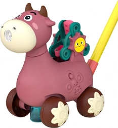 Uroczy chodzik WOOPIE w kształcie różowej krówki pomaga dzieciom trenować pierwsze kroki i jednocześnie świetnie się bawić. Oferuje robienie baniek, melodie oraz obrotowy wałeczek z literkami dla nauki poprzez zabawę. Dzięki wygodnej rączce jest odpowiedni dla małych rączek i wspiera koordynację oraz zdolności motoryczne.