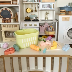 Zestaw drewnianych produktów do krojenia nie tylko rozwija dziecięcą wyobraźnię, ale także wspiera rozwój umiejętności manualnych. Korzystając z tego zestawu, dzieci mogą zamienić się w małych kucharzy, co rozwija ich kreatywność i umiejętności społeczne poprzez odgrywanie różnych sytuacji kuchennych. Zabawa w krojenie i przygotowywanie posiłków pomaga dzieciom uczyć się o zdrowym odżywianiu i poznawać różne rodzaje żywności.