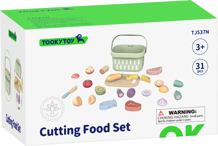 Podaruj dzieciom radosne gotowanie z drewnianym zestawem produktów TOOKY TOY. Zawiera 31 elementów, w tym owoce, warzywa, rybę, jajka, deskę i nóż oraz praktyczny koszyk do przechowywania. Części łączą się za pomocą rzepu lub magnesu i można je wielokrotnie „kroić”. Wspiera motorykę małą, kreatywność oraz zabawy w role i uczy dzieci zdrowego odżywiania.