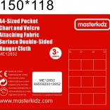 Tekstylny wiszący organizer marki Masterkidz z trzema rzędami kieszeni na książki lub obrazki. Idealny do wykorzystania w szkołach do objaśniania złożonych tematów lub jako ciekawy element do eksponowania wartościowych tytułów, na przykład w bibliotece.