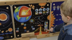 Dzięki ruchomym elementom i efektom świetlnym dzieci mogą łatwo nauczyć się o zewnętrznej i wewnętrznej strukturze Ziemi.