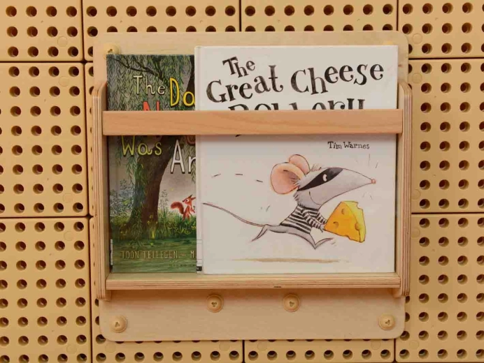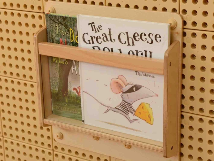 Idealna na książki, małe zabawki, kontrolery i dekoracje. Naturalny wygląd drewna oraz zaokrąglone krawędzie wspierają bezpieczne i estetyczne użytkowanie w domowym kąciku, przedszkolu i sali zabaw.