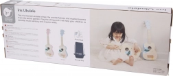 Ukulele wykonano z trwałych materiałów i ozdobiono nietoksycznymi farbami. Doskonale sprawdzi się podczas swobodnej zabawy, zajęć umuzykalniających i wspólnych chwil z rodziną – zarówno w domu, jak i na zewnątrz. To przyjemna droga do rozbudzenia w dzieciach kreatywności i wrażliwości na muzykę.