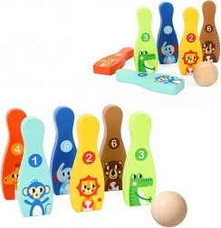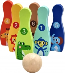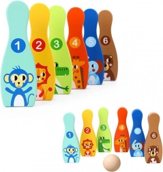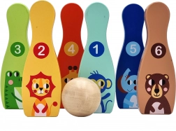 Drewniane dziecięce kręgle ze zwierzątkami 6 szt. + piłeczka TOOKY TOY