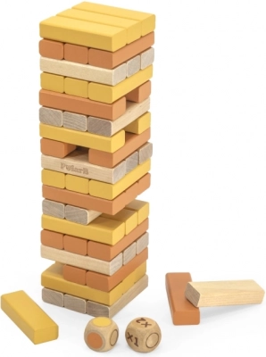 Zbudujcie startową wieżę, ostrożnie wyciągajcie po jednym elemencie i odkładajcie go na szczyt. Dzięki kolorowym klockom możecie dodać element losowości – rzut wskaże, jaki kolor klocka trzeba wyjąć. Gra doskonała dla dzieci od 3 lat i dorosłych, oferuje emocjonującą zabawę, która trenuje cierpliwość i strategię.