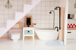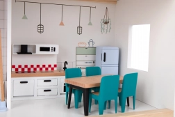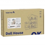 Odkryj urok nowoczesnej architektury w dziecięcym wydaniu. Drewniany domek dla lalek TOOKY TOY ma 3 poziomy pełne detali – kuchnię z jadalnią i łazienkę na parterze, przestronny salon na pierwszym piętrze oraz przytulną sypialnię z balkonem na poddaszu. W zestawie znajduje się mebelki i dekoracje, które nadają każdemu pomieszczeniu realistyczny charakter.