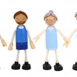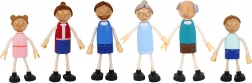 W zestawie znajduje się rodzina sześciu postaci z ruchomymi kończynami, która rozwija umiejętności społeczne i kreatywną zabawę.