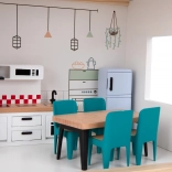 Każde piętro ma jasno określoną funkcję – od kuchni i łazienki po salon i sypialnię z balkonem. Dzieci łatwo tworzą własne opowieści.