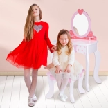 Dziecięca toaletka od marki Tooky Toy jest doskonałym dodatkiem do każdego dziecięcego pokoju. Wykonana z wysokiej jakości drewna i ozdobiona białymi oraz różowymi detalami, ten zestaw spełni marzenie każdej małej księżniczki.