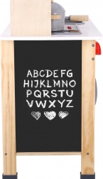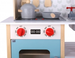 Ta piękna drewniana kuchnia posiada szeroką gamę funkcji, takich jak kuchenka, piekarnik, mikrofalówka i tablica, na której dzieci mogą rysować. Kuchnia wykonana z wysokiej jakości materiałów jest przeznaczona dla dzieci od 3 lat.