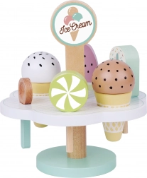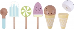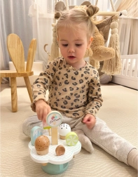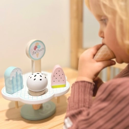 Ten wspaniały drewniany zestaw lodów jest idealny dla dzieci, które kochają kreatywną zabawę. Pastelowe kolory i staranne wykonanie gwarantują długie godziny radości podczas zabawy w sprzedawcę lodów lub wyposażania dziecięcej kuchni. Zdrowy wybór dla rozwoju dziecięcej kreatywności i umiejętności społecznych. Magnesy zapewniają stabilność, co czyni zabawę jeszcze przyjemniejszą.