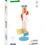 Zestaw do sprzątania marki Tooky Toy nauczy dzieci odpowiedzialności i pozwoli im naśladować dorosłych w codziennych obowiązkach. Dzięki praktycznemu stojakowi z niebieską podstawą narzędzia można łatwo przechowywać.