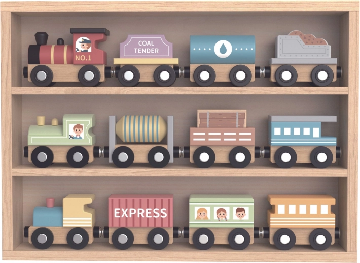 Po zakończeniu zabawy pociągi i wagoniki można umieścić w wysokiej jakości drewnianej skrzynce, która jest częścią zestawu, co zapewnia łatwość organizacji i przechowywania.