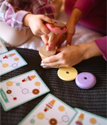 Ta zabawka pozwala dzieciom tworzyć własne kreatywne kombinacje kolorowych pierścieni oraz rozwijać ich wyobraźnię i kreatywność.