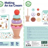 Drewniana zabawka do układania lodów marki WOOPIE GREEN to idealny wybór dla dzieci od 12 miesięcy. Ta edukacyjna zabawka pozwala dziecku odkrywać świat kolorów i kształtów oraz rozwijać logiczne myślenie i umiejętności manualne. Dzieci mogą tworzyć własne kombinacje z kolorowych pierścieni lub śledzić dołączone karty z wzorami, co zapewnia, że każda zabawa to nowe przygoda!