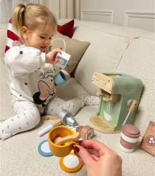 Zabawa w kawiarni oferuje doskonałą okazję do nauki poprzez zabawę! Zestaw marki Woopie Green umożliwia dzieciom zabawę w małych baristów z 25 elementami, w tym ekspresem do kawy, filiżankami, kapsułkami i mlekiem. Wykonany z naturalnego drewna i pomalowany bezpiecznymi farbami, zapewnia realistyczny wygląd i bezpieczną zabawę.