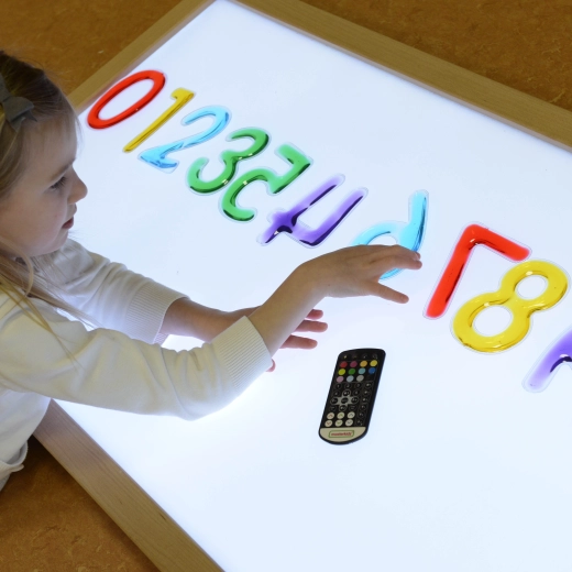 Przezroczyste kolory na podświetlonej powierzchni rozświetlają się, zwiększając uwagę i zamieniając każdą aktywność w angażującą zabawę sensoryczną. Świetne do klasy i do domu.