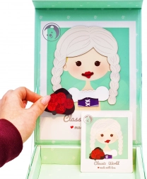 Odkryj magię twórczej zabawy z magnetyczną układanką księżniczek CLASSIC WORLD. Dzieci mogą według wzorów lub własnej fantazji tworzyć różne wyglądy i stroje. Dzięki solidnym magnesom elementy dobrze się trzymają, więc układanie jest wygodne zarówno w domu, jak i w podróży.
