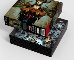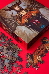 Ciesz się wysokiej jakości puzzlami z mroczną estetyką gry DIABLO IV. Motyw Lilith, 1000 precyzyjnie wyciętych elementów i gotowy wymiar ok. 48 × 68 cm ucieszą fanów i kolekcjonerów.