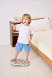 Świetnie nadaje się do codziennej aktywności w domu, w pokoju dziecięcym, w przedszkolach i bawialniach. Dzieci w formie zabawy trenują równowagę, wzmacniają kostki oraz mięśnie głębokie i poprawiają koncentrację.