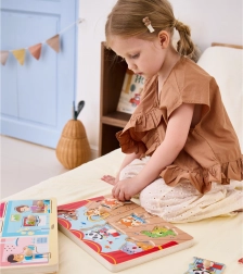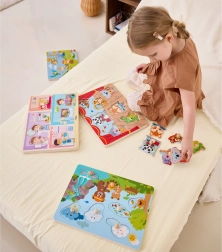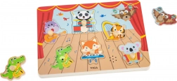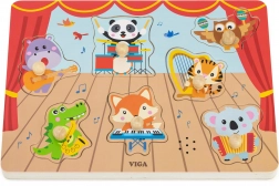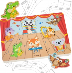 Wejdź do świata muzyki i nauki z oryginalnymi drewnianymi puzzlami marki VIGA, gdzie zwierzęcy muzycy rozpalą wyobraźnię Twojego dziecka. Po podniesieniu i ponownym umieszczeniu elementu dziecko usłyszy realistyczny dźwięk instrumentu muzycznego, co wspiera naukę przez doświadczenie.