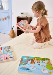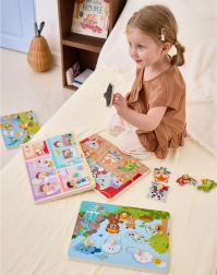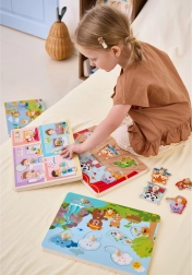 Kolorowe puzzle przedstawiają różnorodne sceny i dźwięki przyrody, które natychmiast przyciągają uwagę dzieci.