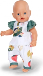 Urocisty zestaw ubranek dla lalek BABY born i misiów Teddy w rozmiarze 43 cm oferuje zabawny design z małpką, kaczką Bertą i owocami. Zestaw obejmuje białą koszulkę z zielonymi falbankowymi rękawami oraz drukowane spodnie – stylowy wygląd i wygodne przebieranie. Wysoka jakość wykonania, łatwe ubieranie i długo trwała zabawa na co dzień.
