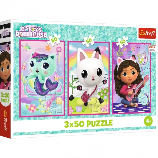 Puzzle 3x50 - Poznaj Gabby i jej kotki to zabawna kolekcja inspirowana serialem Gabby's Dollhouse. Układanie to nie tylko rozrywka, ale też sposób na rozwijanie małej motoryki i wyobraźni.
