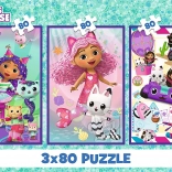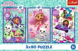 Zestaw puzzli 3×80 elementów oferuje trzy różne obrazki w jednym opakowaniu z motywami z ulubionego serialu Koci domek GABY. Dzięki trzem oddzielnym układankom układanie jest jeszcze zabawniejsze, a do zabawy może dołączyć wiele dzieci jednocześnie. Każdy gotowy obrazek ma wymiary 275 × 180 mm i jest wykonany z wysokiej jakości materiałów z certyfikatem FSC.