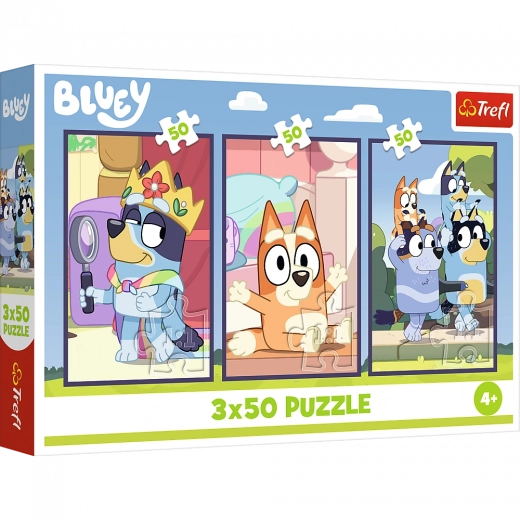 Zestaw Rodina Bluey zawiera trzy wspaniałe układanki, każda po 50 elementów. Każda układanka przedstawia ulubione postacie z animowanej bajki Bluey i po złożeniu tworzy piękne obrazki o wymiarach 275x180 mm. Ta wersja puzzli świetnie nadaje się do grupowego składania i wspiera współpracę zespołową między dziećmi.
