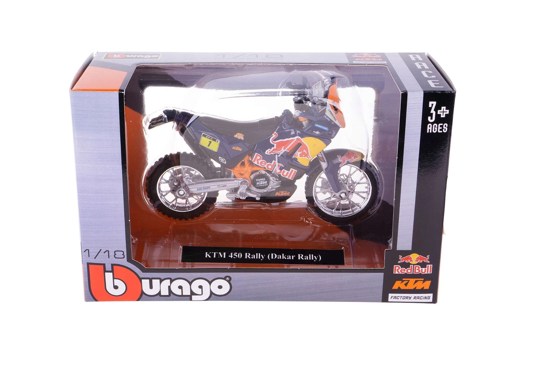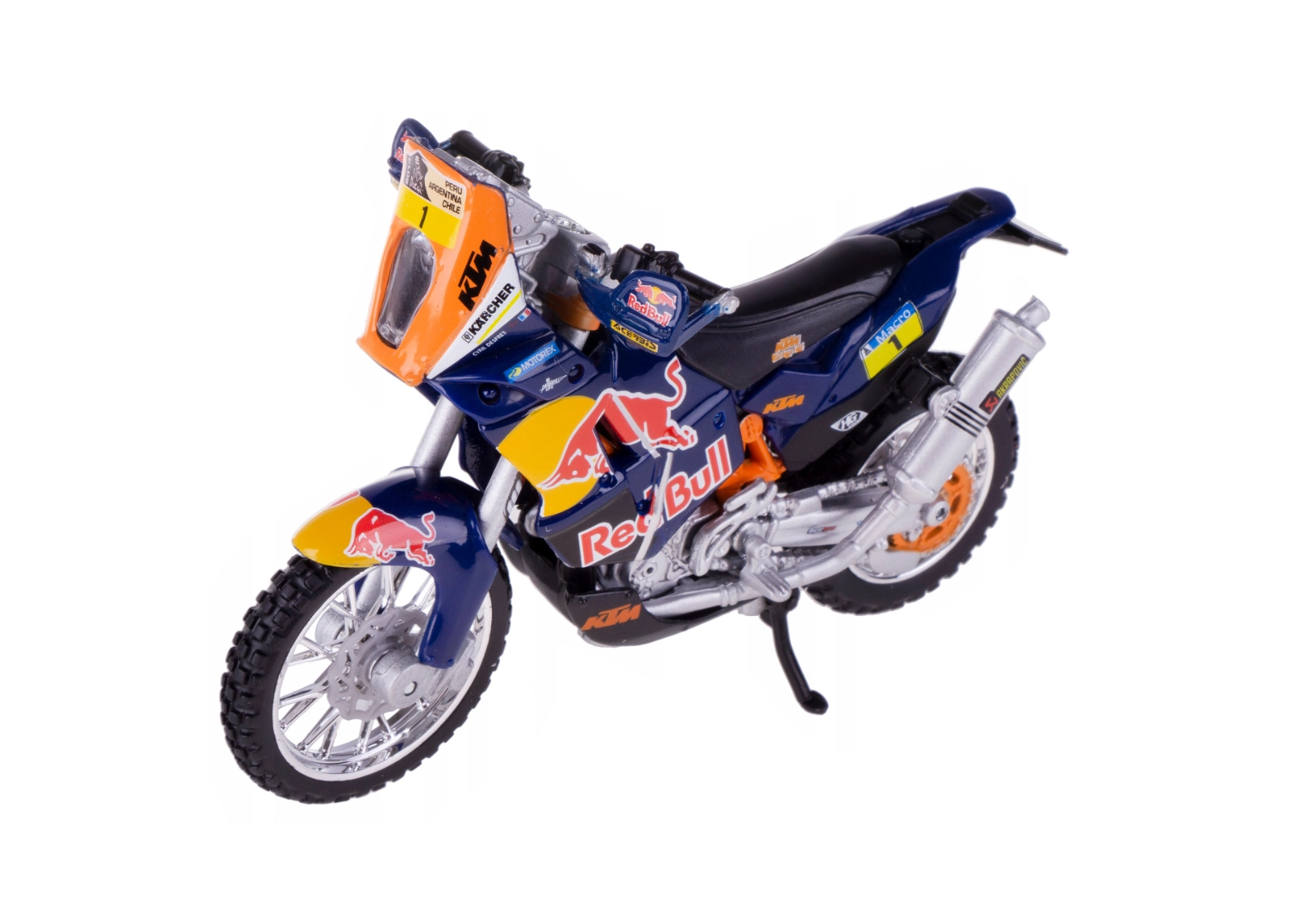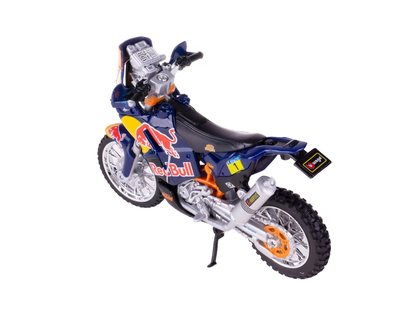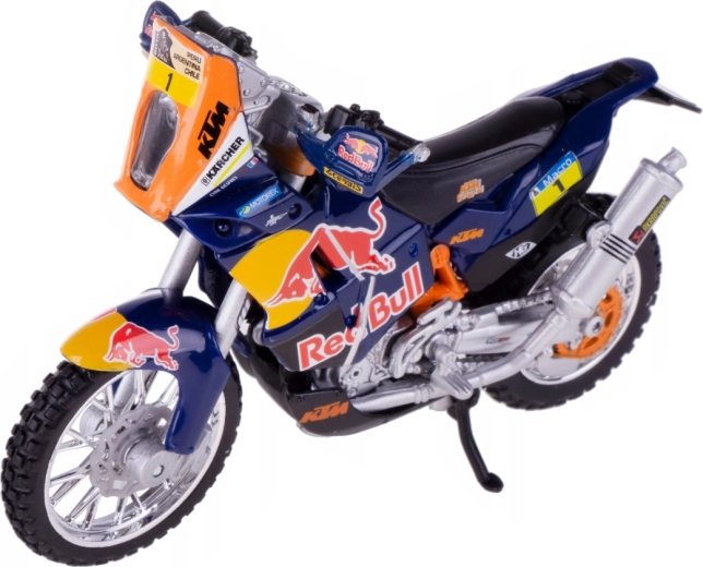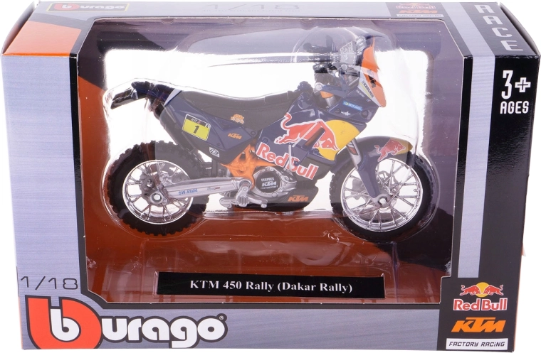 Odkryj precyzyjną replikę wyścigowego specjalu Red Bull KTM Factory Racing przygotowanego na legendarny Dakar Rally. Model Bburago w skali 1:18 zachwyca solidnym metalowym korpusem, finezyjnie wykonanymi plastikowymi detalami oraz autentyczną kolorystyką zespołu.
