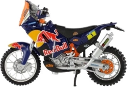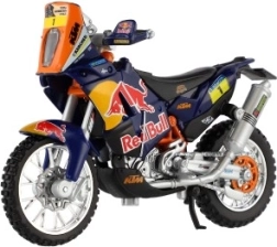 Model zawiera wierne kolory i styl ulubionego zespołu Red Bull KTM z Rajdu Dakar.