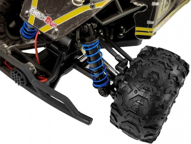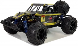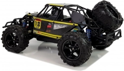 To terenowe RC buggy w skali 1:18 zaprojektowano z myślą o maksymalnej zabawie poza utwardzonymi drogami. Solidna konstrukcja, duże koła z agresywnym bieżnikiem oraz niezależne zawieszenie z amortyzatorami olejowymi zapewniają świetną przyczepność i stabilność nawet w wymagającym terenie.
