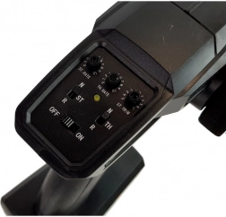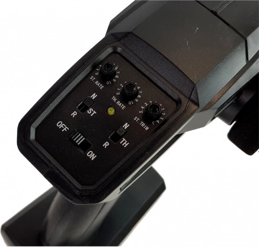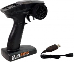 Ergonomiczny pistoletowy nadajnik z kontrolą skrętu i gazu na częstotliwości 2,4 GHz gwarantuje niezawodny zasięg i jazdę bez wzajemnych zakłóceń.