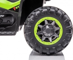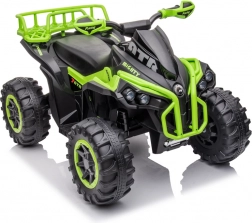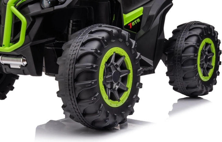 Ten dziecięcy elektryczny quad wyróżnia się wyrazistym zielono‑czarnym wzornictwem i realistycznym wykonaniem. Szerokie opony z głębokim bieżnikiem zapewniają pewność na nierównym terenie, a ergonomiczna kierownica z antypoślizgowymi chwytami gwarantuje wygodne i łatwe sterowanie. Idealny na podwórko, do ogrodu i na utwardzone ścieżki.