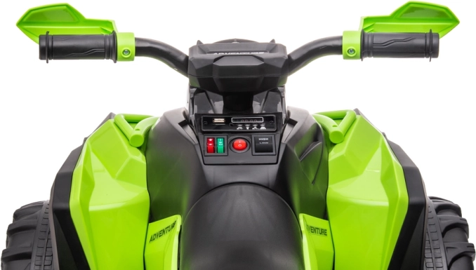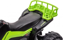 Quad wykonano z trwałych materiałów i wyposażono w detale, które dzieci uwielbiają – „reflektory”, sportowe akcenty oraz praktyczny tylny bagażnik. Rodzice docenią bezpieczną eksploatację i stabilne podwozie, a dzieci atrakcyjny wygląd i wrażenie prawdziwej jazdy.