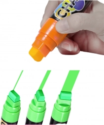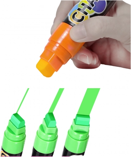 Dzięki ergonomicznemu designowi markery wygodnie leżą w dłoni i umożliwiają precyzyjne pisanie oraz detaliczne rysunki. Tusz z nieporowatych powierzchni można łatwo zetrzeć wilgotną ściereczką, więc zmiany tekstów czy dekoracji zajmują chwilę – idealne do menu boardów, witryn, planerów i twórczości dziecięcej.